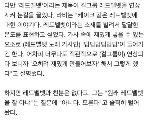 레벨팬 아닌데도 기분나쁘네 ㅋㅋ노이즈마켓팅을 원한건가?? 레드벨벳 맛있어, 실수에 ‘예리’?? 누가 실수에 예리라는 말을 씀..? 예민은 아이린 겨냥한것같고 가사수준 토나온다진짜