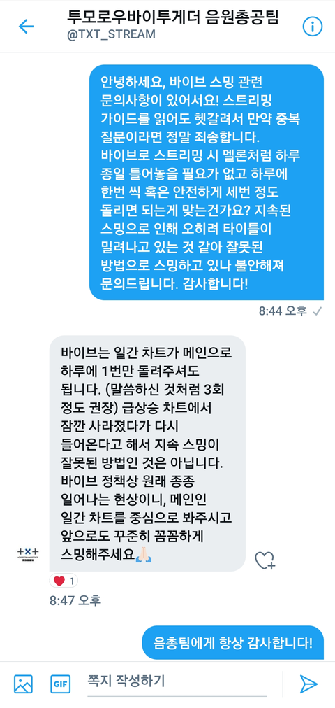 바이브 스밍 문의 넣었는데