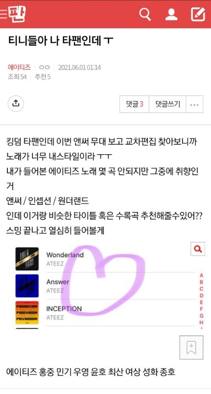 티니, 티즈, 타팬분들, 타팬분들 본진 다 화이팅♥