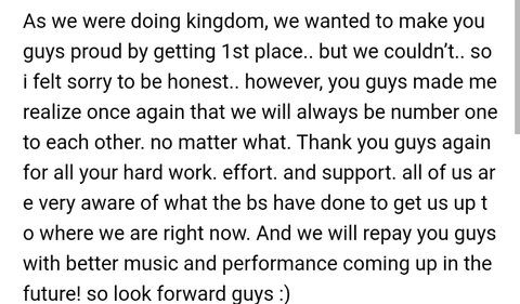 1위해서 우리 기 살려주고 싶었는데 못했다고 그래서 미안하다고 했네