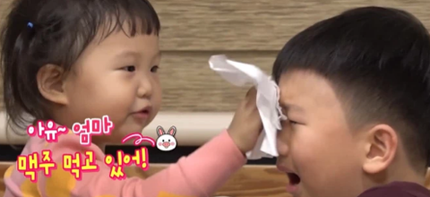 엊그제 엄마 맥주 먹고 있다며 오빠 달래주더니...