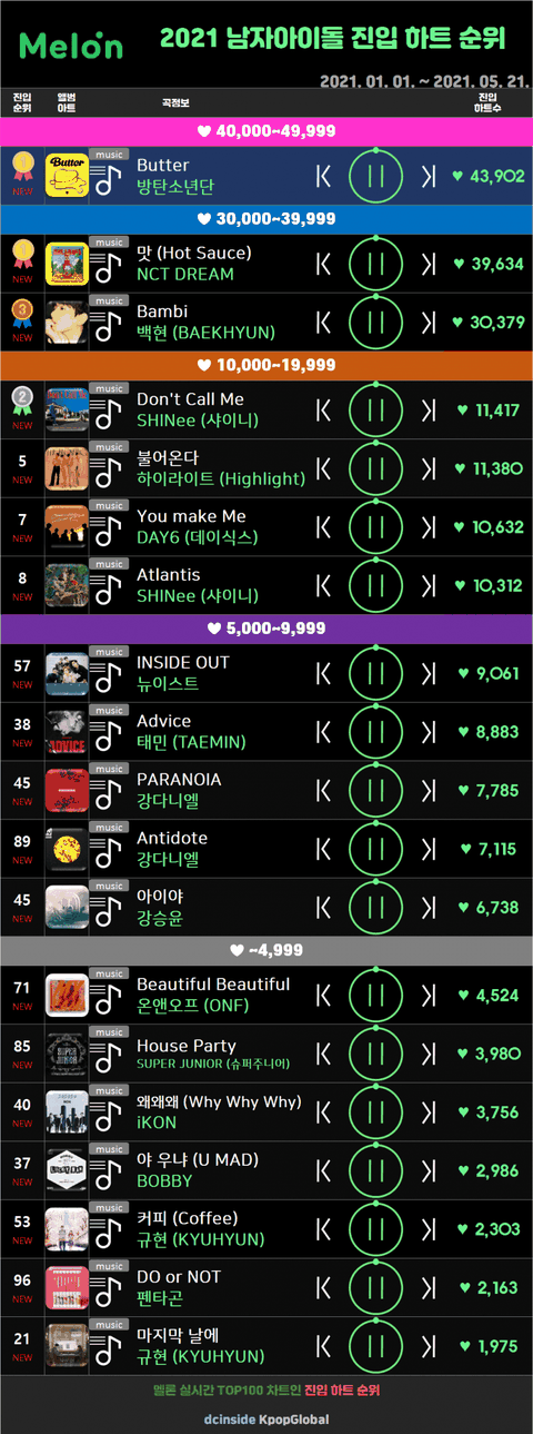 2021 진입순위 하트수라는데 방탄....