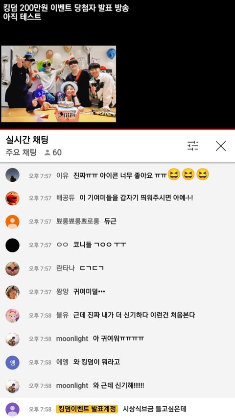 지금 아이콘 200만원 추첨 라이브 테스트중