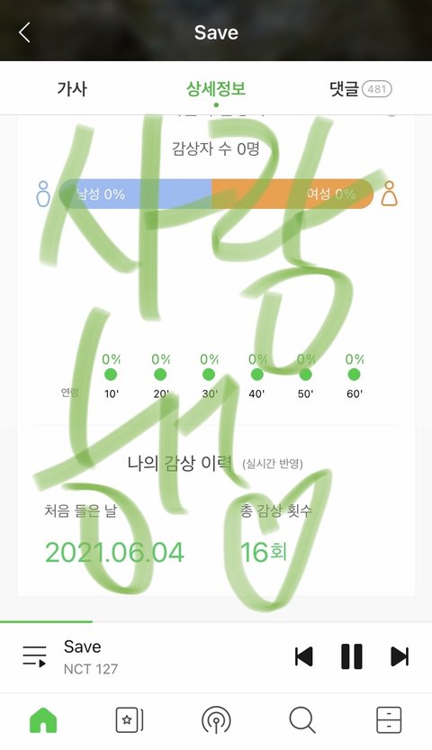 6시 되자마자 계속 들었어... 중간에 친구 전화와서 잠깐 끊겼지만 지금 스밍리스트로 하는 중~~~