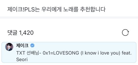 오늘 위버스에서 투바투 노래 언급