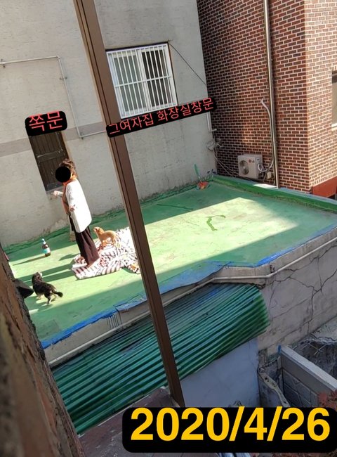그때부터 문제가 생겼습니다.. 강아지가 있기전에는 식구들이 뒷마당에 자주 갈일이없어서 못봤지만.. 강아지 밥챙겨주러 나갈때 그 뒷집여자를 처음봤어요.. 그여자 화장실창문이 정확하게 저희 뒷마당을 보고있고 늘 거기 나와서 담배피며 골목에 지나가는 사람들이나 전화로 싸우고 욕하는거였어요..