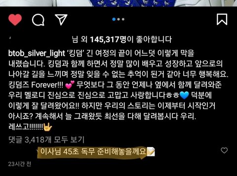은광오빠 인스타에 안무가님이 댓글 다신 건데