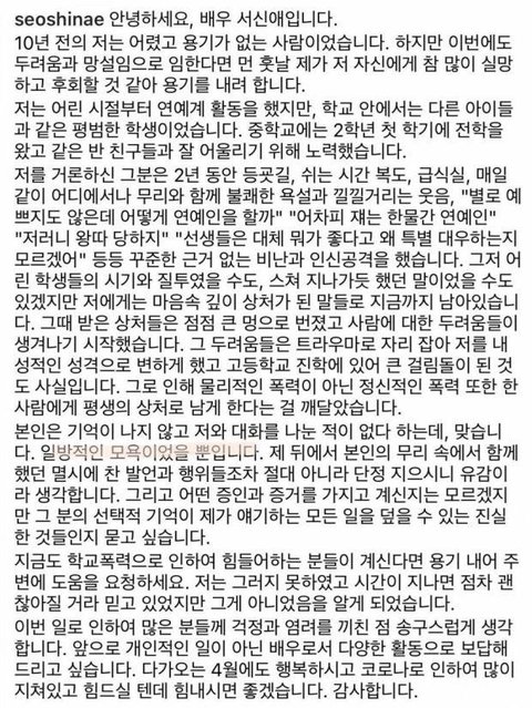 서신애 배우 입장문 나오고 70일 지나도록 말이 없는 서수진과 큐브엔터