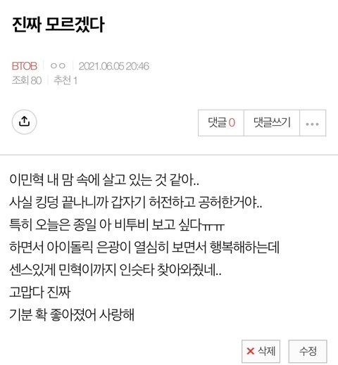 인슷타 와줘서 고마워서 울컥했는데 틧타까지 와준 거 보니까 너무 감동받아서 어쩔 수 없다 우리 민혁이 내가 들튀할게 +ㅋㅋㅋㅋㅋ벌써 반대 박히는 중ㅋㅋㅋㅋ하지만 어쩔 수 없어 내가 번쩍 들고 튈거야
