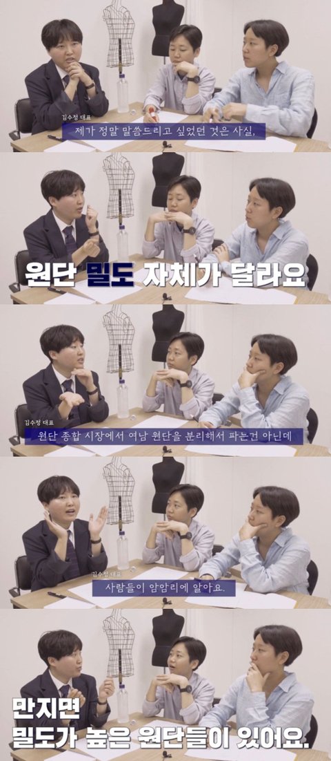 영상에 나오는 세 분은 의류업계에서 종사하시는 분들임. 위의 스샷은 영상의 일부분이고