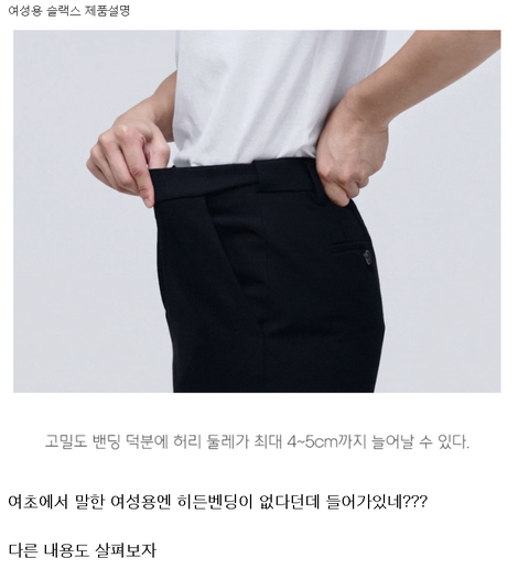 다시말해, 문제된 원래 여성용 슬랙스를 두고 비교한것이 아닌 개선되어서 출시된 제품으로 비교한 것
