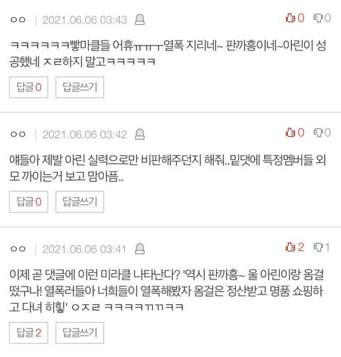 저 까글에 있던 캡쳐본 참조함 이게 비판 글인지 비난 글인지 한번 잘 판단해 보삼