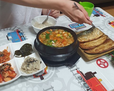 반찬나르기전 밥부터 퍼주면 일단 맨밥만 막떠먹는 성장기라