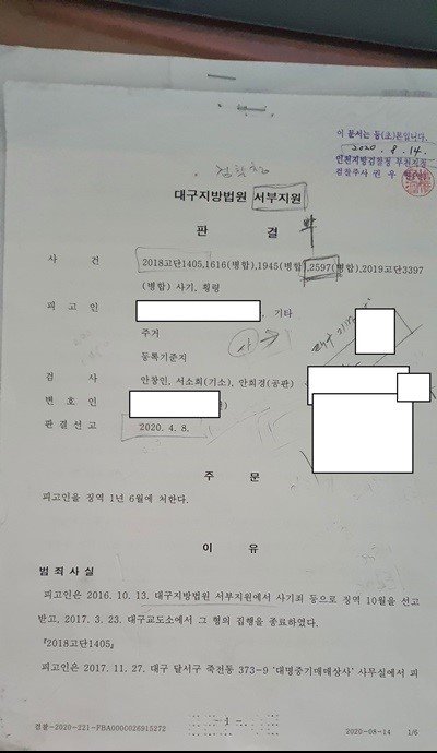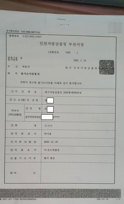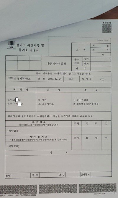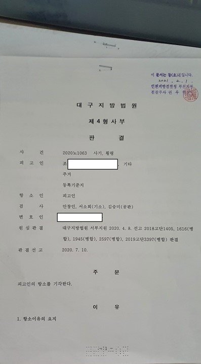 모든 것이 끝난 후 판결문을 확인하여 보니 검찰과 판사는 알면서도 잘 못 된 부분을 수정하려 하지 않고 계속 기각