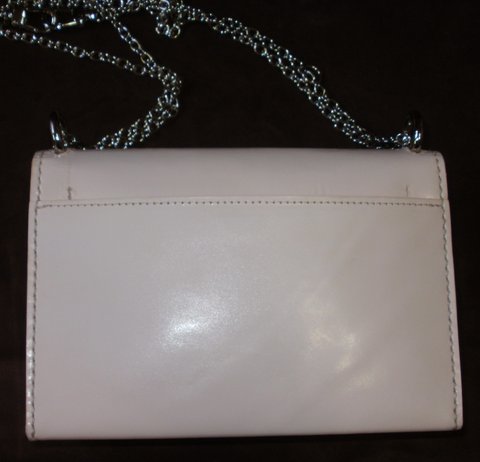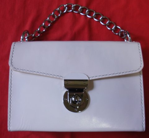 베지터블 가죽에 아이보리 컬러로 염색하고 핸드 스티치로 마감하였으며,니켈 도금 락 장식과 체인 숄더,체인 핸들로 장식하여 제작한 핸드메이드 가죽 미니백입니다.(대구가죽공예-마디샤가죽공예)