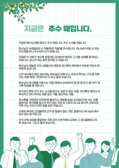 대한민국 전역에 추수의 때라는것을 알지 못하는 신앙인들은 없을 것입니다