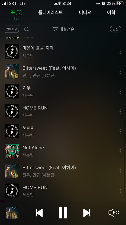 맨날 다른 앱으로 스밍 돌리다가 이번에 처음으로 서양 수박으로 돌려보는데 순서가 원래 맨 처음에 넣었던 노래가 맨 밑으로 가는 게 정상이야?