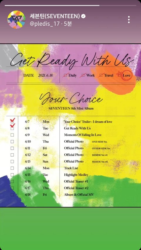 지금까지 뜬 건 체크돼있고 위에 러브만 별표돼있음