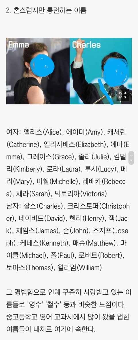 우리가 영어권 국가가 아니라서 체감이 잘 안 갔는데 방금 우리가 많이 쓰는 영어 이름들에 얼마나 촌스러운지 빡 체감시켜주는 기사를 봤어