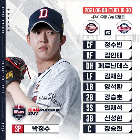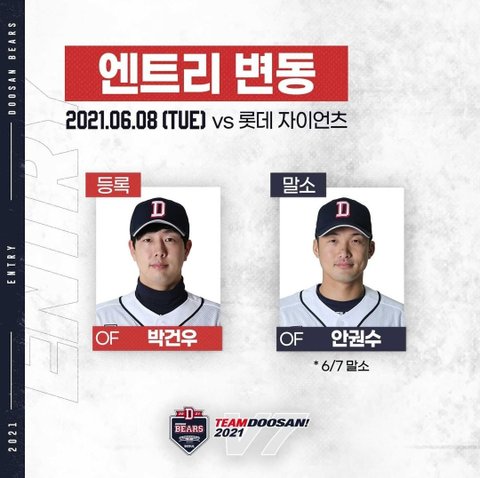 6. 8 두산 베어스 엔트리 변동 + 라인업