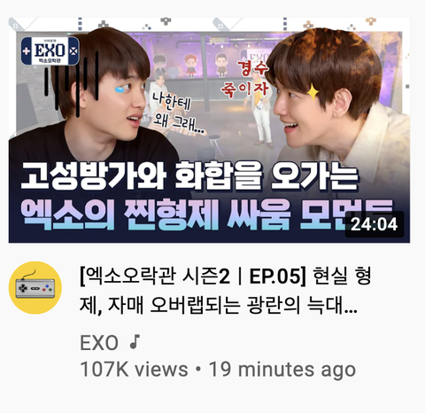 방금전에도 엑소오란관 시즌 2 엑소 유튜브에 업로드 됐는데?