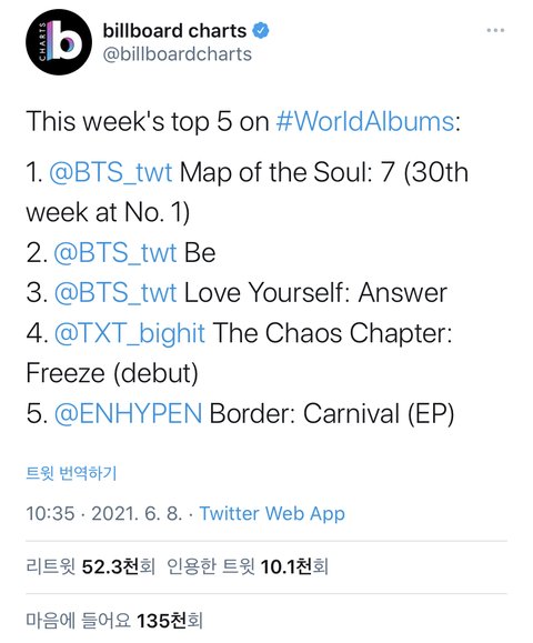 밑밑댓 TXT 다음 빌보드 200 6위 예상 차트 떳어