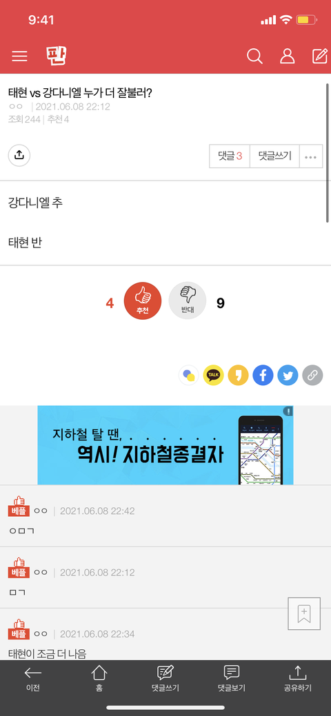 베댓갔으면 눈치있게 좀 지워 댓글 세갠데 그게 다 베댓임... (물론 팬톡애가 안한걸수도 있는데 혹시 몰라서 하는말임)