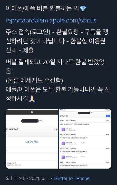 저번에도 여기 팬톡에서 누가 환불 하면서 무제한으로 버블 이용 가능하다고 하던데 암튼.. 저렇게 하면서 버블 받은 사람이 있다는 거 아니냐...,,,.. 돈 계속 환불 받으면서 이용 가능한거래;