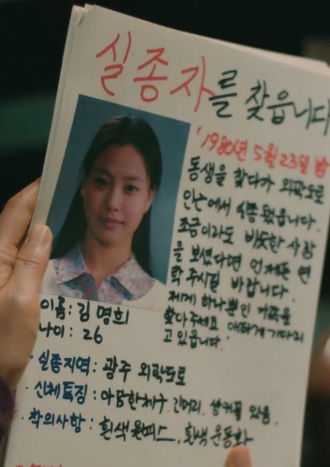 - 1980년 5월 희태가 쓴 실종자 전단지 -