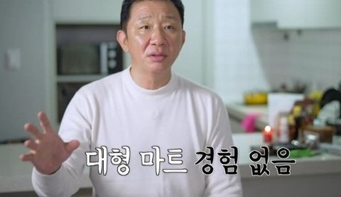 허재가 대형 마트에 가서 카트를 끌고