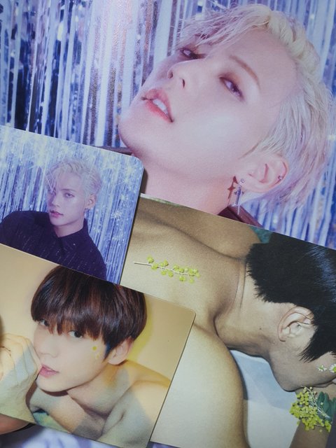 여긴 포토카드가 예쁨! 근데 뭔가 구성이 조금 아쉬운 느낌이 있음 은광이 앨범은 포카가 진짜 깜찍함ㅋㅋㅋ 무려 어깨 노출도 있음 ㅇㅁㅇ! 겉 패키징이 독특하고 예쁜데(단추) 내용물이 약간 부실하다고 느껴질 수 있음 포토북 속에는 풀때기에 얼굴 가려진 사진도 있음..ㅠㅠ 창섭이 앨범은 저 보라청록 색감이 진짜 예쁨 누가 찍었는지^_^ 분위기가 예쁨 다만 컨셉이 조금 한정적이고 마찬가지로 내용물이 부실한 편ㅠㅠ