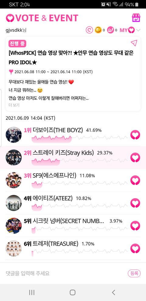 이번에도 우리 애들 1위 시켜주자!!!