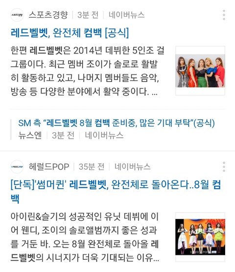 레드벨벳 8월에 컴백함