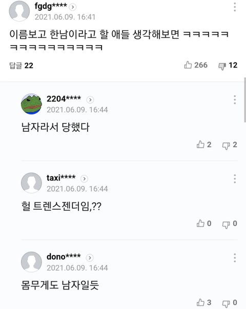 하지만 남자로 밝혀짐ㅋㅋㅋㅋㅋㅋㅋ 여혐민국 답게 기사에 남자라고 표시 안하는중