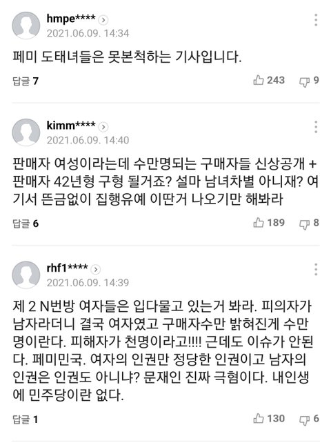 n번방도 여자들이 수면위로 들어내서 이슈된건데 ㅋㅋ 남자n번방은 바로 화제되고 가해자 성별 밝혀지지도 않았는데 여자로 몰아가더니 결국 남자 ㅋㅋ 가해자 여자였으면 나라 뒤집어졌지 남자들 피해의식 상상초월이네