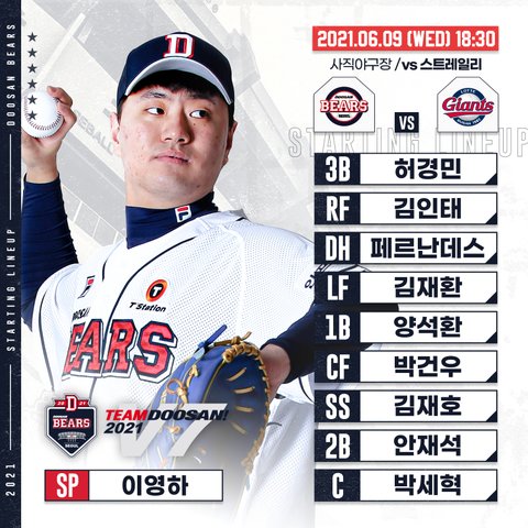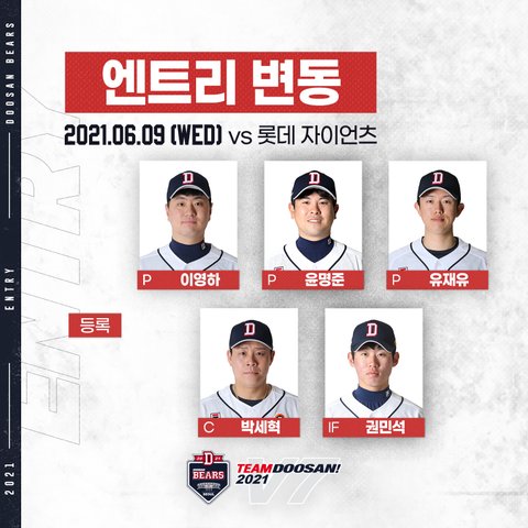 6. 9 두산 베어스 엔트리 변동 + 메디컬 리포트 + 라인업