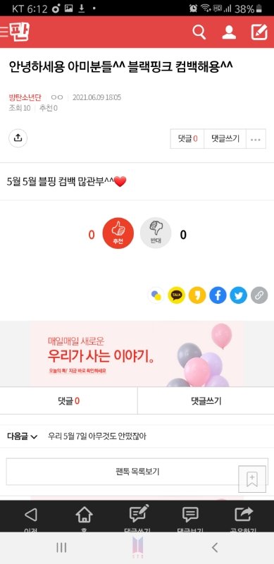 안녕하세용 아미분들^^ 블랙핑크 컴백해용^^