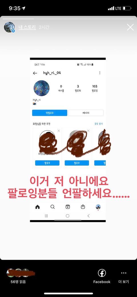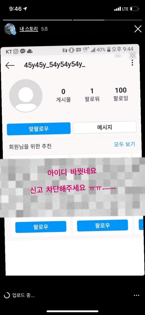 "너랑 아이디 같은사람이 자기 팔로우걸었다. 너 해킹당했니?"