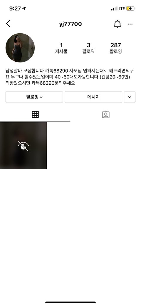 방금 밤 9시쯤 누가 팔로우를 신청하길래 봤는데 스팸이였음