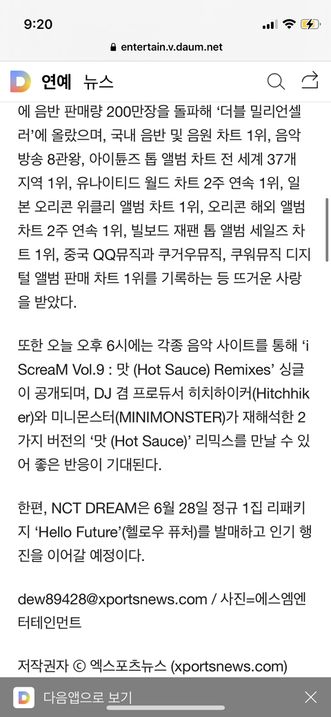 한편, NCT DREAM은 6월 28일 정규 1집 리패키지 ‘Hello Future’(헬로우 퓨처)를 발매하고 인기 행진을 이어갈 예정이다.