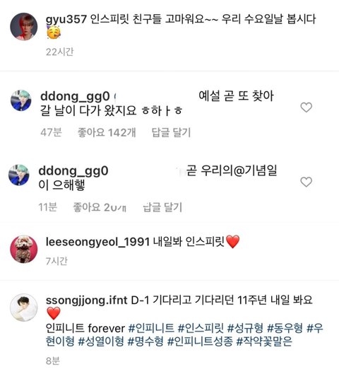 18년부터 군백기 겪고 있고항상 멤버들 소식과 떡밥에 미친듯이 굶주리며인피니트 보고싶다..만 외쳐왔는데