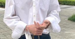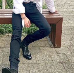 서있을때는 한 손으로 반대손 잡거나 바지 뒷주머니에 손 넣음 앉으면 한쪽 다리만 구부리고 한 팔 뒤로 짚음
