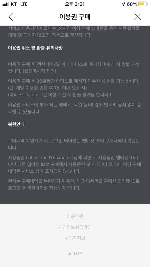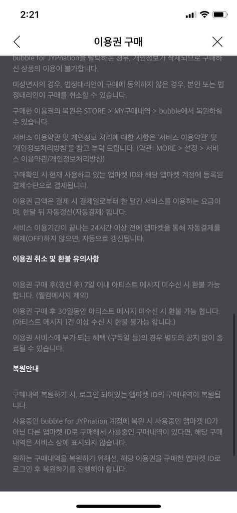 버블 환불 문의 몇번 들어갔다고 약관 바뀐 거 봐