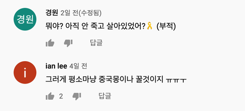 그리고 현재까지도 야갤 애들 댓글창에 머물면서 이 가수 보고 계속 악플 다는중... 하도 주작 의혹이 많아서 진단서랑 영상 인증까지 했는데 거기다가도 아직 안 죽었냐는 댓글 달리더라... 나는 솔직히 남혐이고 여혐이고 페미고를 다 떠나서 저것들이 인간인지 의문이 든다... 쟤네는 얘도 남자애라는걸 모르는건가?
