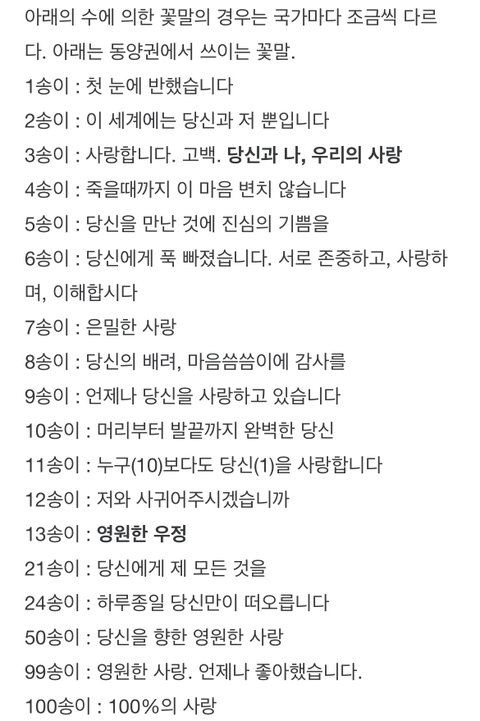장미의 수에 따른 꽃말은 각각 정해져있는데