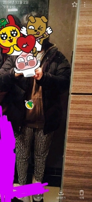 지금도 사진을 자주 찍지는 않는데 예전에는 특히 안 찍었어서 사진이 별로 없어요ㅋㅋㅋ 겨우 가져왔어요유 ㅠ 먼저 60키로 쫌 넘을 때 사진입니당 키는 165에요!겨울옷이라 몸은 다 가려졌지만 먼가 덩치감이 느껴지긴 하죠 ㅎㅎㅎ↑요건 57?58?키로쯤일듯요! 몸무게를 자주 확인하지 않았는데 사진 촬영 날짜 상 그정도로 추정합니당↑ 최근 사진이긴 한데 일주일 정도? 과자 치킨을 많이 먹었어서 다른 부위보다 배가 좀 많이 나왔었어요 ㅜ 티가 확 나더라구여 몸무게는 안 쟀지만 저날 재어봤다면 55kg+ 붓기까지 한 56~57키로 정도나갔을 듯 싶어요