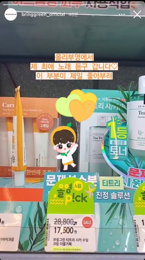 나 봉 올영 못가서 슬펐는데 브링그린 인스타에 인증되있네