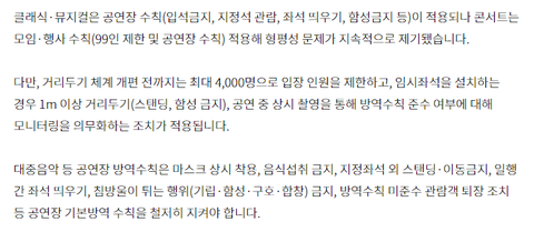 콘섵4000명까지 가능. 기립,함성,구호,합창 금지