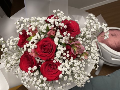 나 태용이 생각나서 장미 꽃다발 사왔어