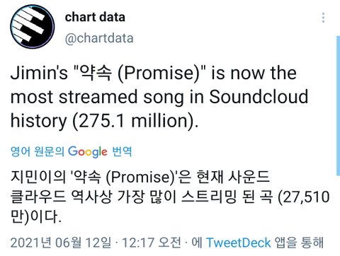 방탄 지민 약속 1등했네.